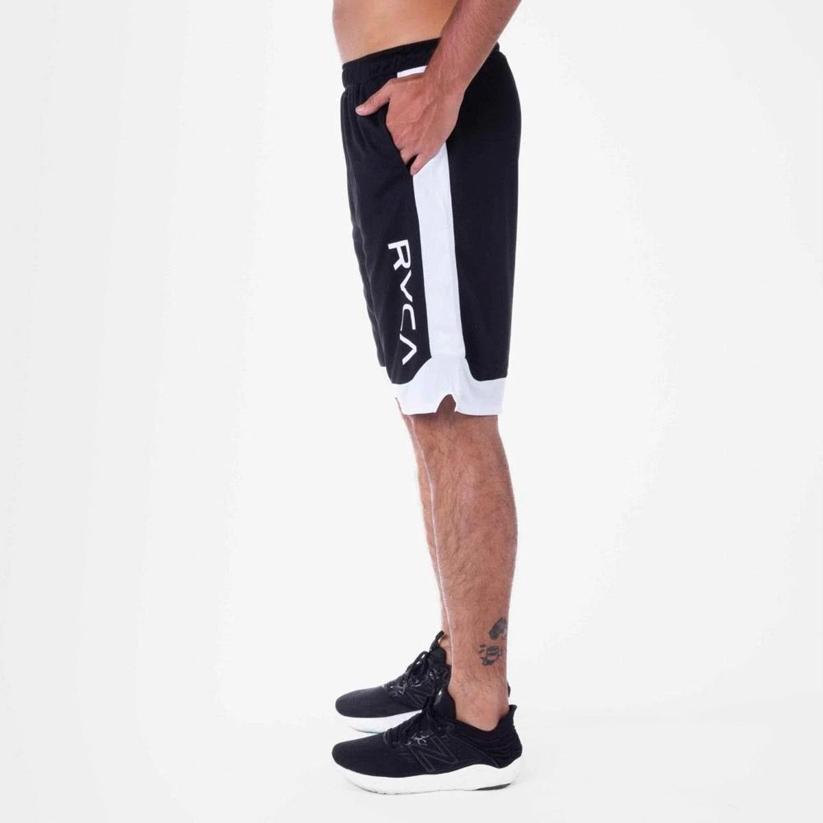 Bermuda coleção RVCA SPORT de tecido dry colmeia total sublimado, esse tecido possui construção onde o suor é transferido para parte externa da peça que tende a evaporar com maior rapidez, ajuda a manter seu corpo seco e confortável para os treinos, cordão interno de ajuste no cós, estampa silk frente e costas, bolsos laterais e etiquetas personalizadas.